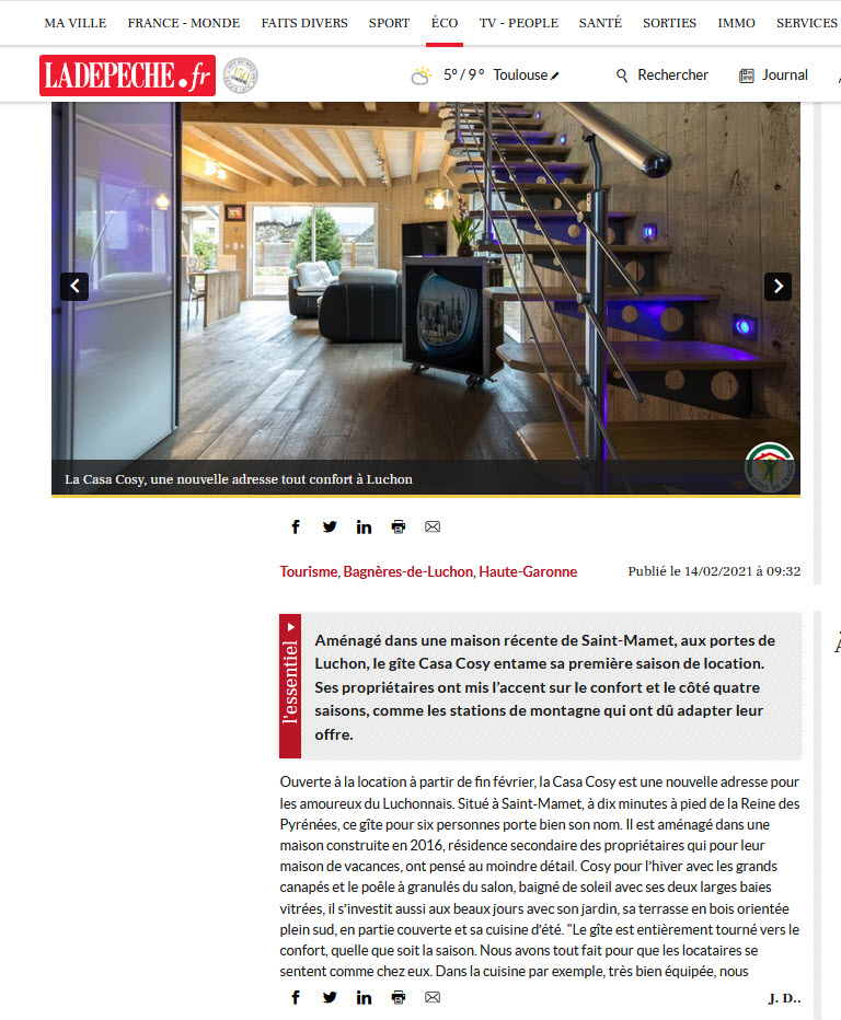 La Dépêche du Midi: Un gite 4 étoiles plébicité !